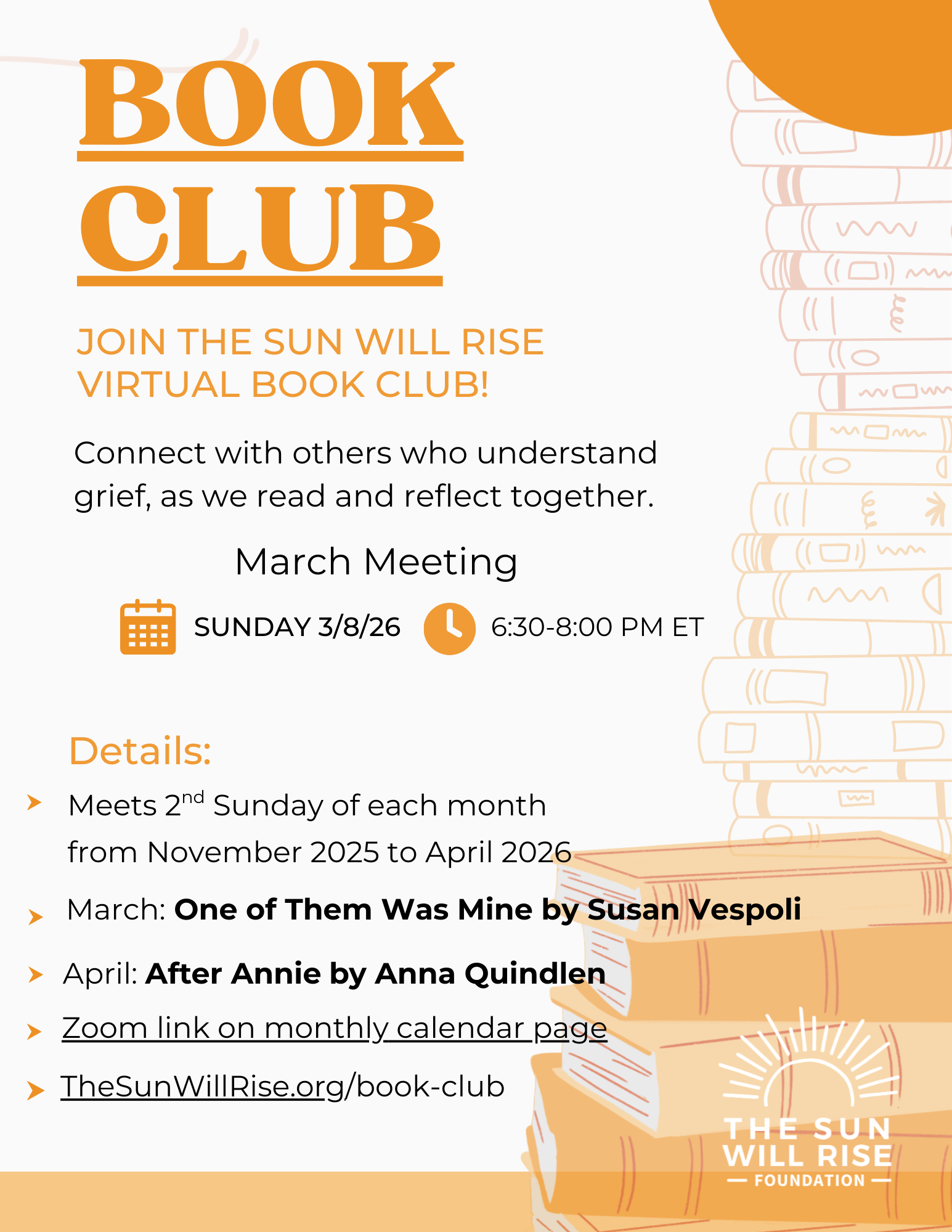 The March 2026 book choice is One of Them Was Mine by Susan Vespoli Join us via zoom.