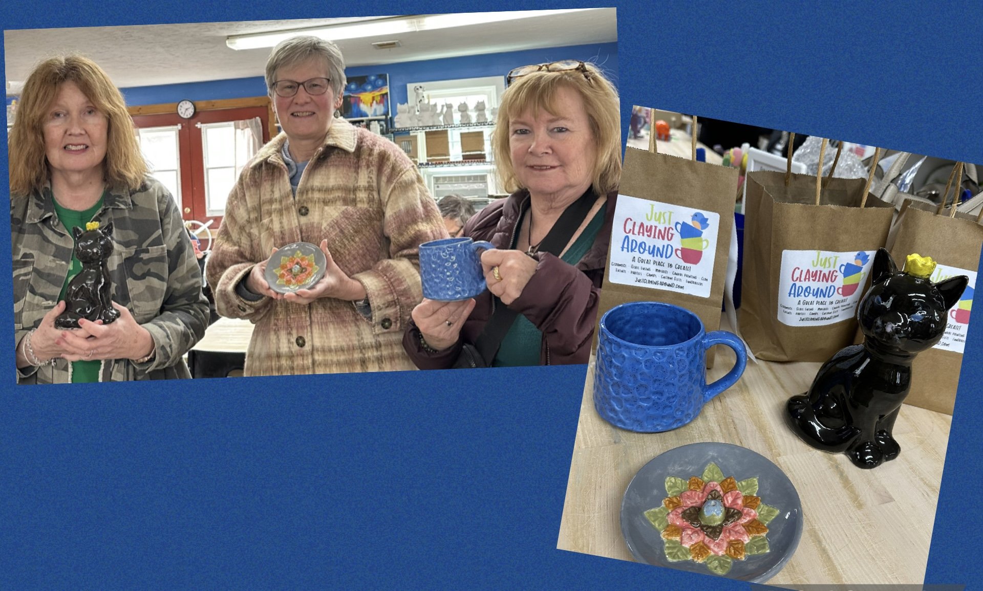 The ceramics we made a few weeks ago are ready for pickup. Here are a few of the fired pieces! They came out great! Please join us at one of our next events!
